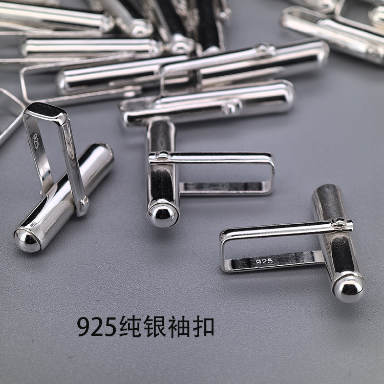 S925純銀カフス部品男性紳士フレンチスーツシャツシンプルカフス杭手作りDIY部品ボタン