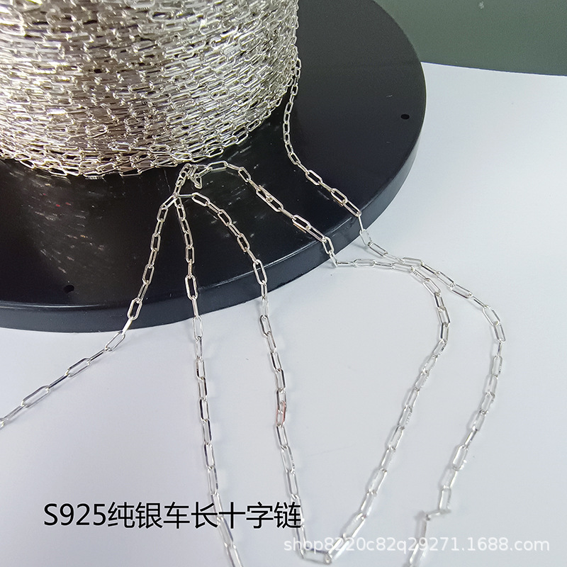 S925純銀長十字鎖四角長十字楕円鎖DIY環相ボタン散鎖銀鎖材料