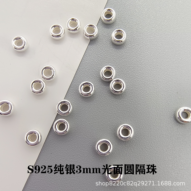 S925純銀光沢面丸スペーサーパッキンビーズDIYブレスレットネックレスビーズ編みビーズシルバー材料アクセサリー