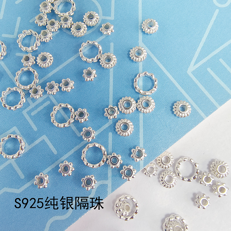 S925純銀ufoビーズそろばんビーズDIY手作りビーズ仕切りパッド銀材料ビーズアクセサリー