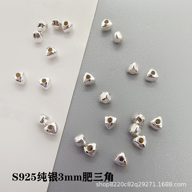 S925純銀肥三角形隔珠砕銀散珠DIY手作りビーズ手ネックレス幾何学立体銀部品