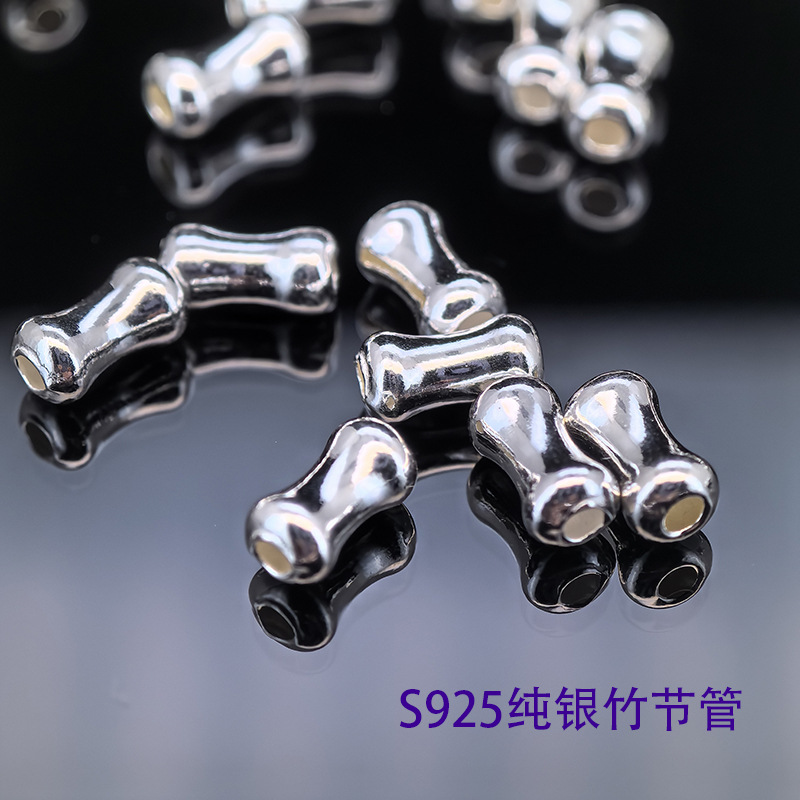 S925純銀竹節珠骨短管DIYブレスレットネックレス節高隔珠ビーズ編み銀部品