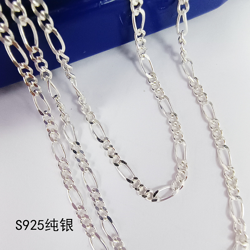 S925純銀車花横身子母チェーンフィガロチェーンDIYネックレスチェーン半製品チェーン部品材料