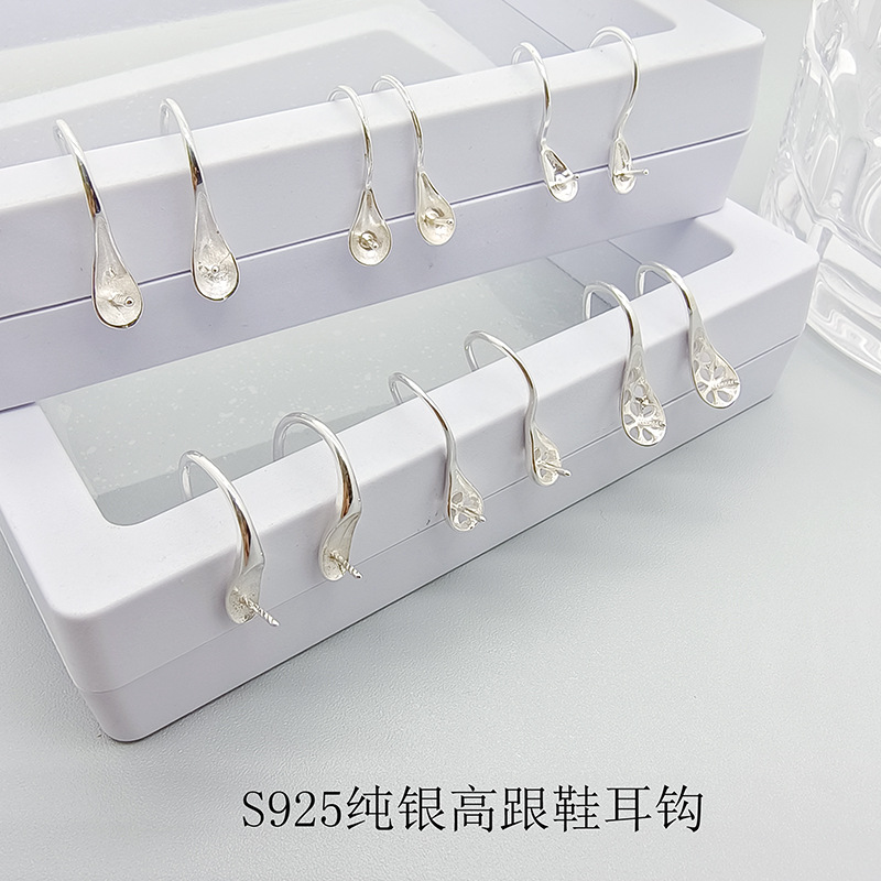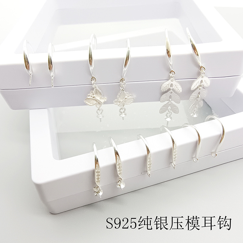 S925純銀の型押し蝶の木の葉の光沢のある耳のフックにドリルとビーズの皿をつけて真珠のイヤリングのDIY耳飾りの部品をくっつけます。