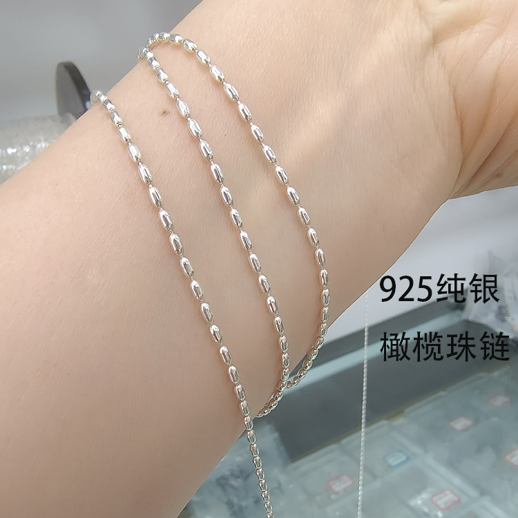 S925純銀オリーブビーズ小米粒豆チェーン楕円光ビーズ散鎖DIY半製品チェーン部品材料