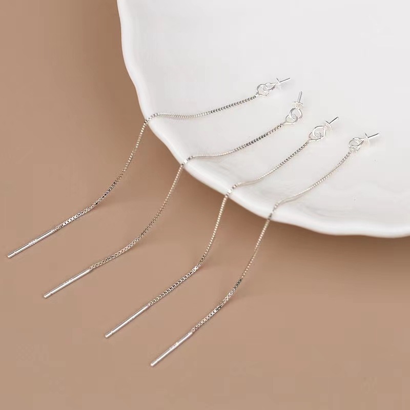 S925通体純銀耳針DIY手作り真珠食器箱チェーン流蘇箱チェーン耳線8cm耳飾り