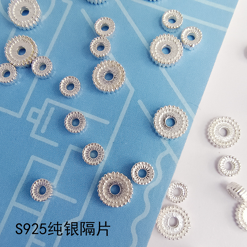 S925純銀ディスク巻きスペーサービーズラウンドビーズDIY手作りネックレスブレスレットビーズ編みシルバーアクセサリー