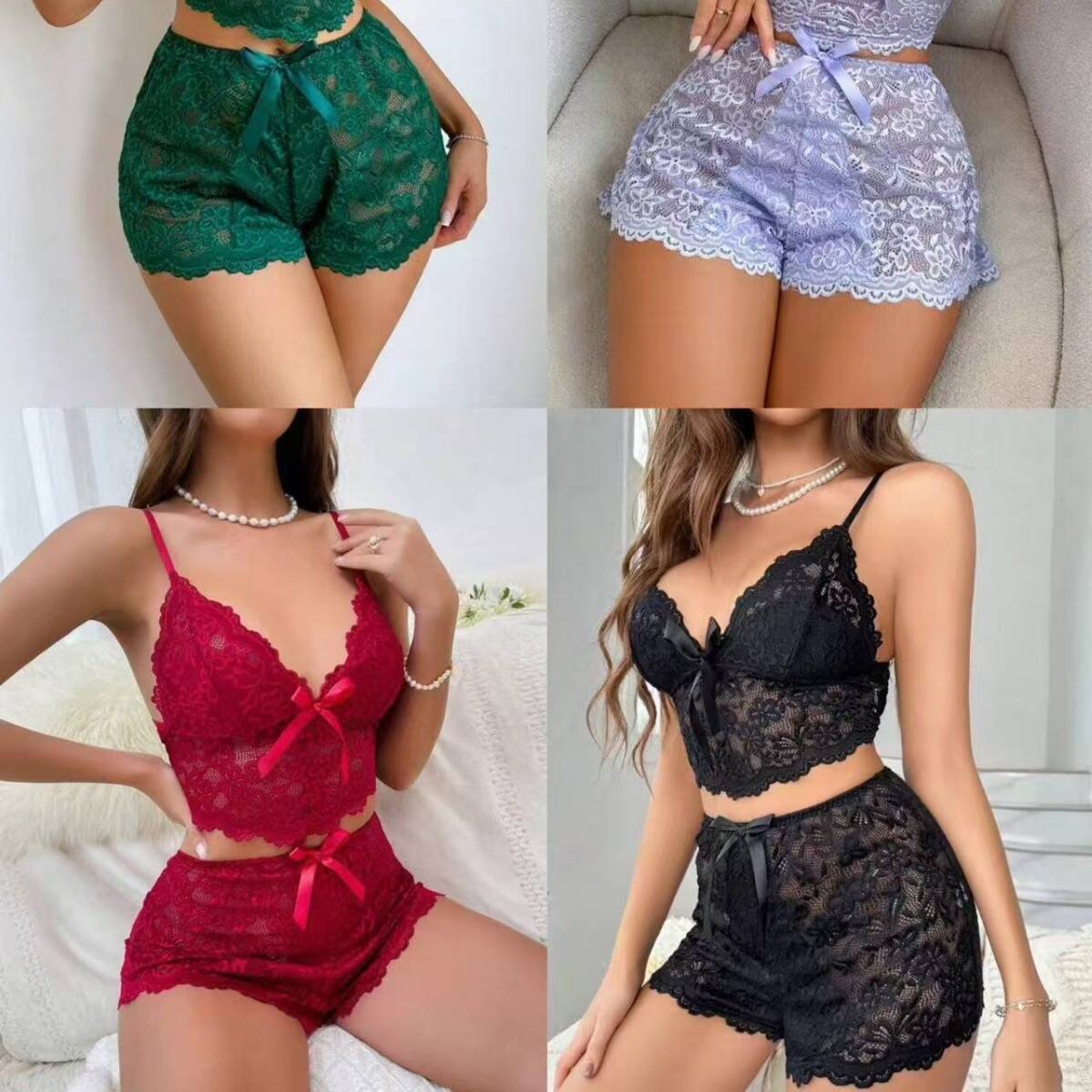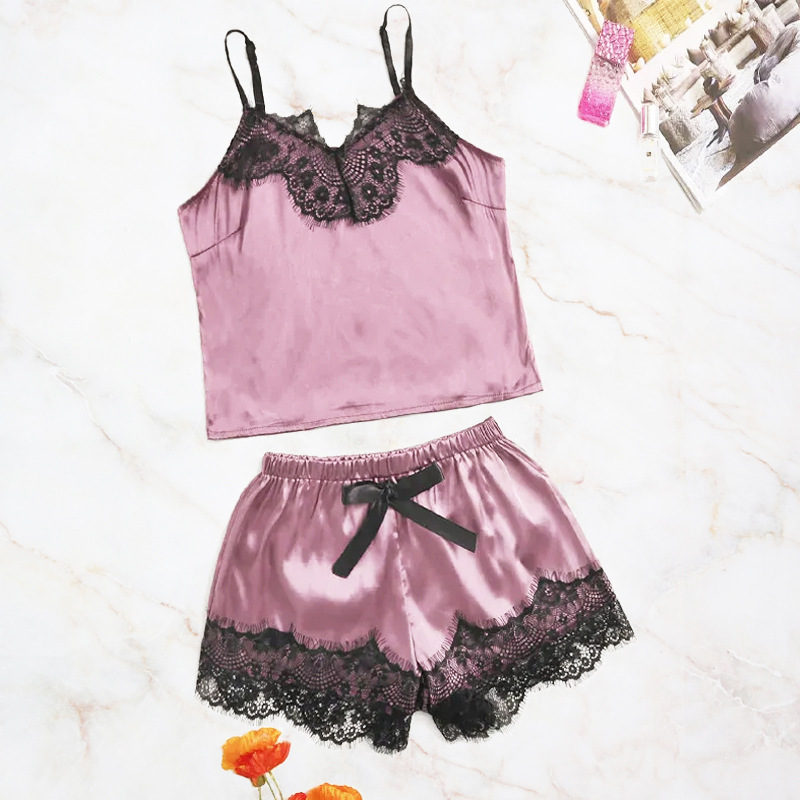 趣味の下着欧米の爆発的なセクシーなレースのストラップのレースの半ズボンの女性の居住服の2つのセットの源の卸売り