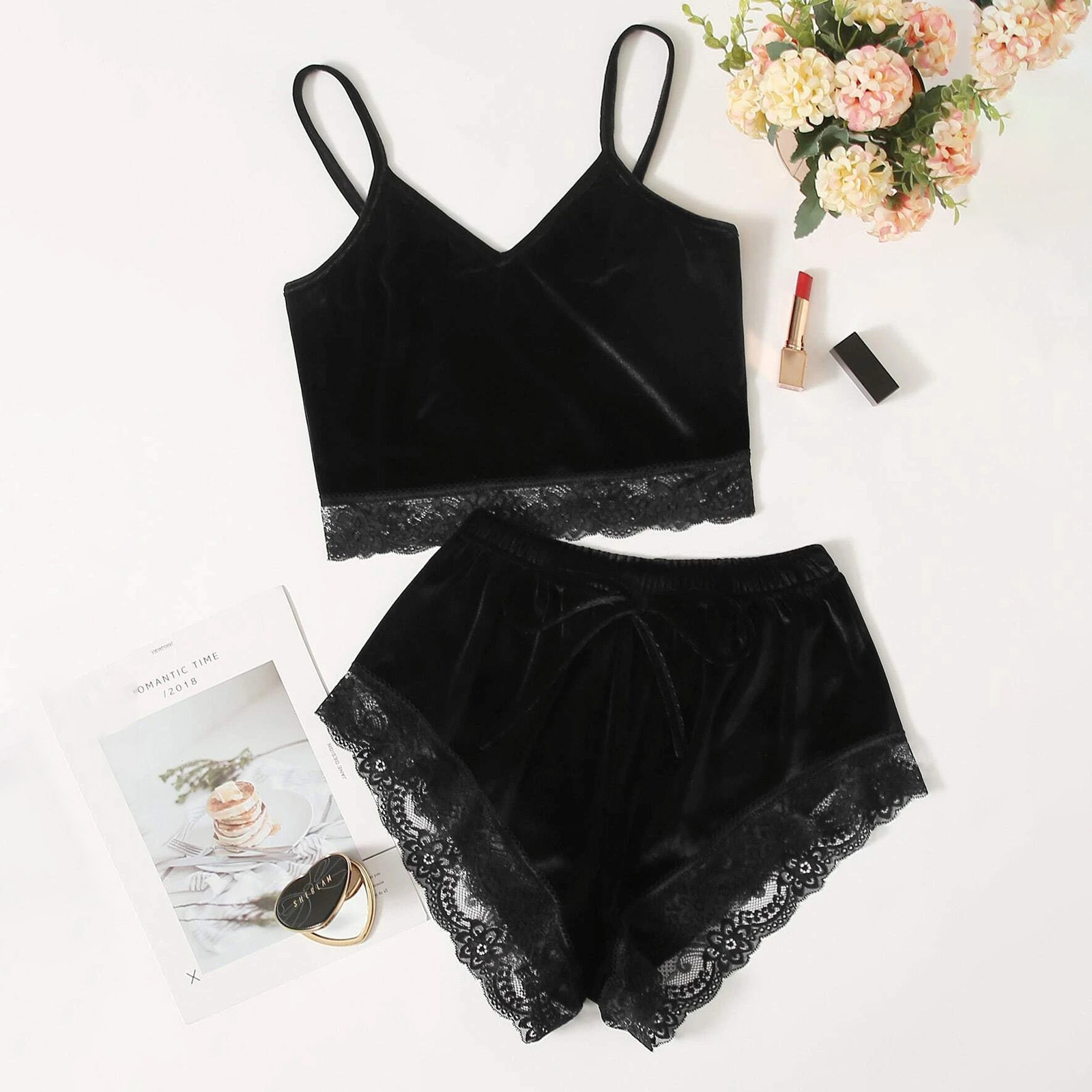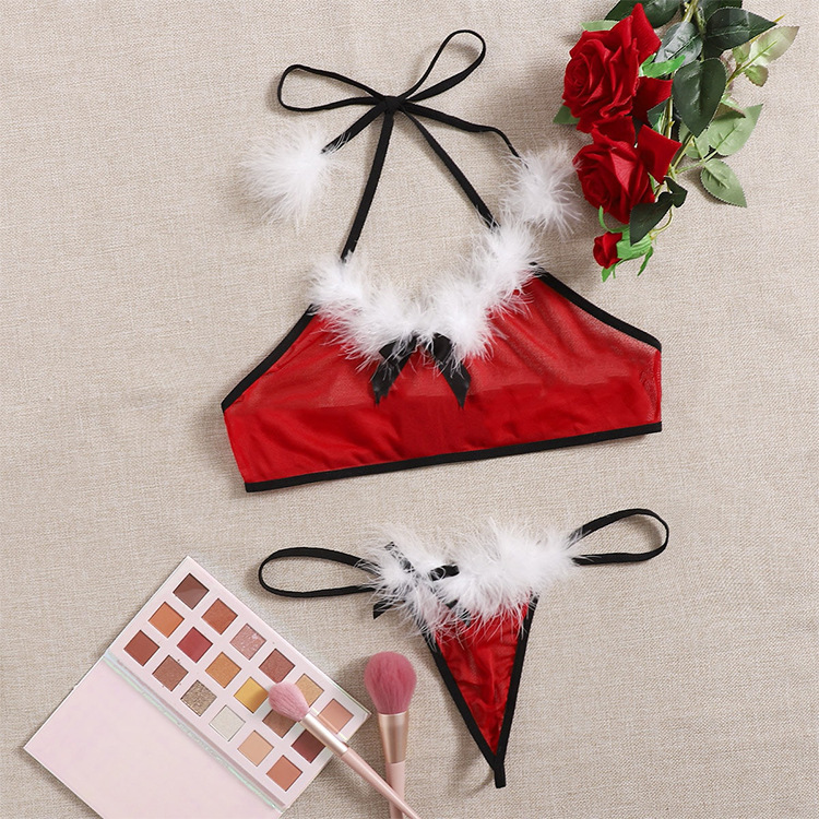 趣味下着欧米の爆発的なセクシーレースのベルベットの柔らかいストラップレースのパンツ女性の居住服の2つのセット