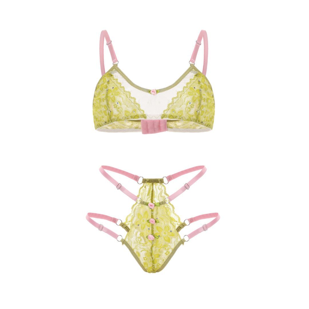 卸売り趣味下着セット粉格連体大蝶死庫水セクシーハスの葉の縁にパジャマを巻いている