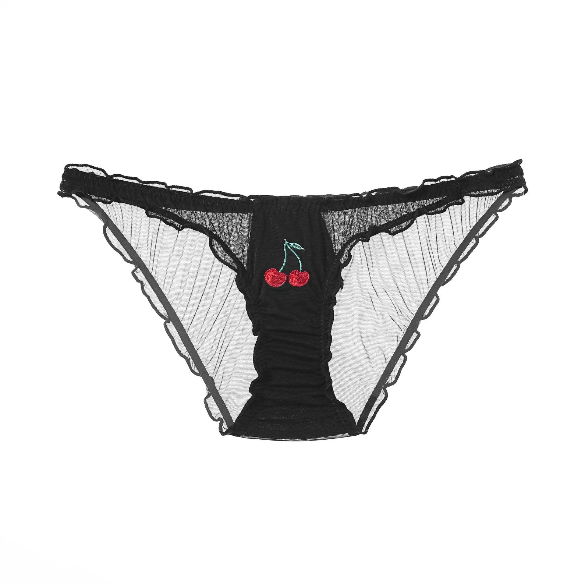 外国貿易の大きいサイズの女性の情緒の下着の網の糸は果物の刺繍の三角のズボンのセクシーな誘惑のハスの葉の辺のt字を透視します。