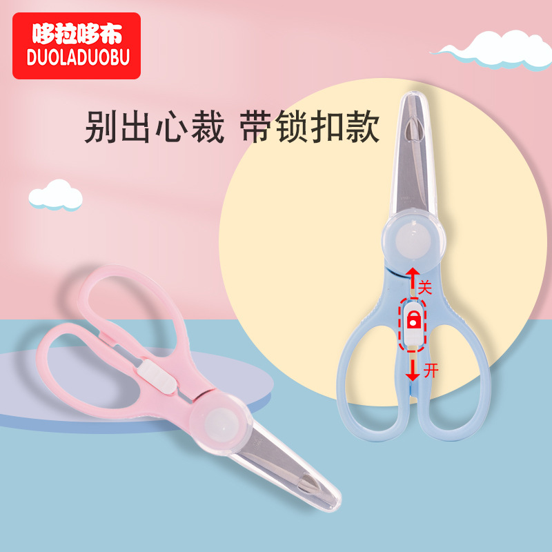 ドラえもん子供用食べ物はさみステンレス製の補助食品は家庭用の肉を切って野菜を切るのに便利です。6359