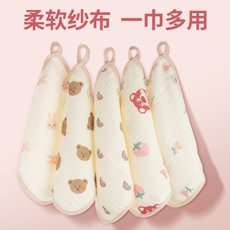 25*25純綿乳幼児吸水ガーゼ小方巾漫画プリント赤ちゃんよだれタオル対外貿易金