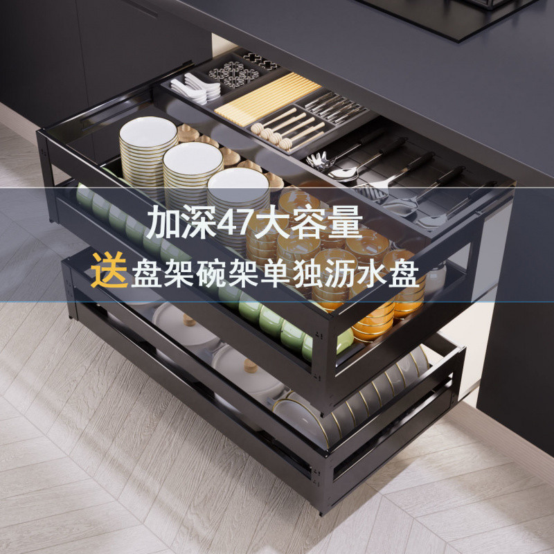 9sa深さ47バスケットキッチンキャビネット二重引き出し式バスケットフレーム宇宙アルミ抽出中アルミ合金ボウル皿