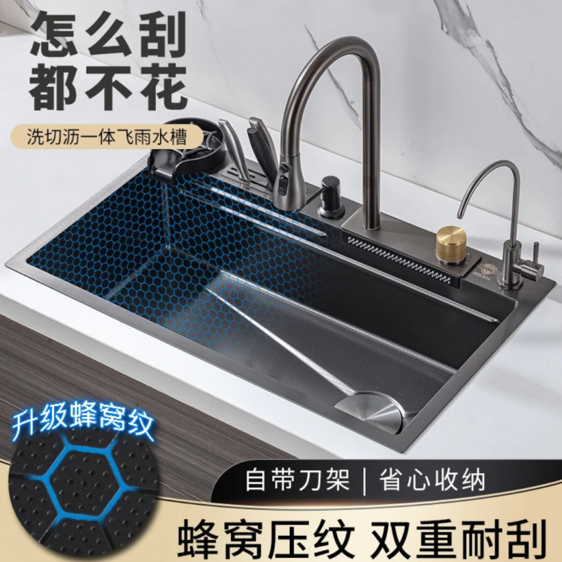 9sa 4.0厚さキッチンSUS304ステンレスクジラ飛雨滝水槽大単槽デジタル表示野菜鉢皿洗い