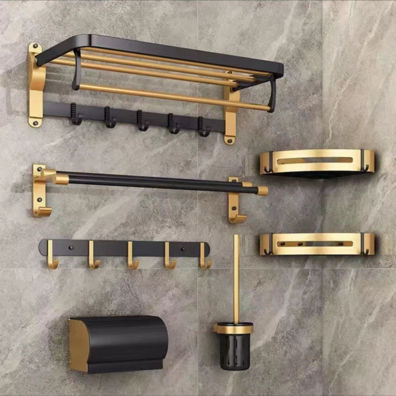 9saヨーロッパ式黒金色トイレ棚トイレタオル掛け穴なし家庭用浴室タオル掛けストラップ