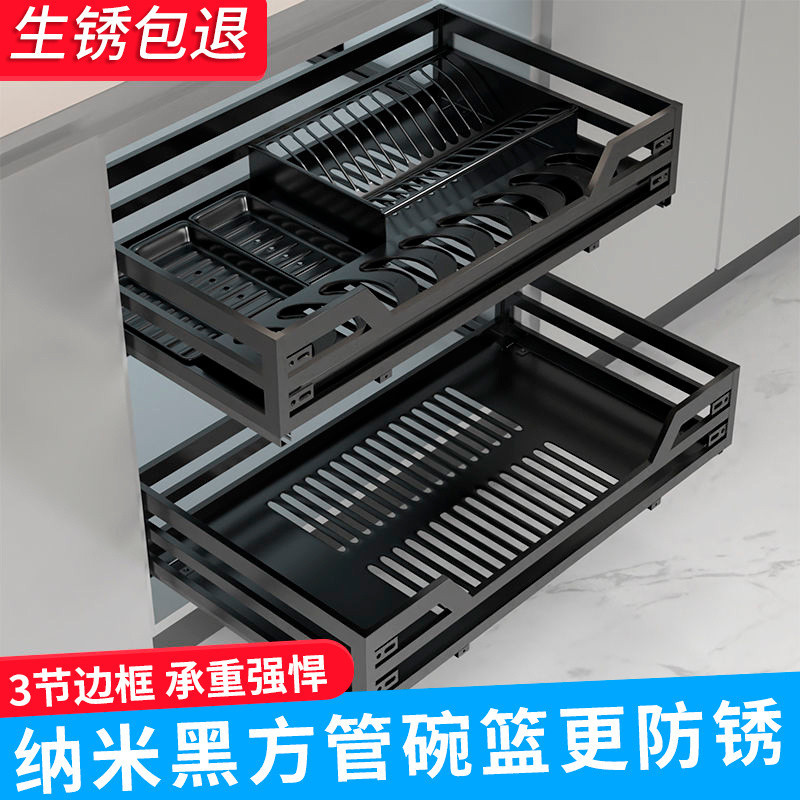 9sa【3.5万人コレクション】ナノブラック304引きバスケットステンレスダンピングクッションキャビネット引きバスケット引出式