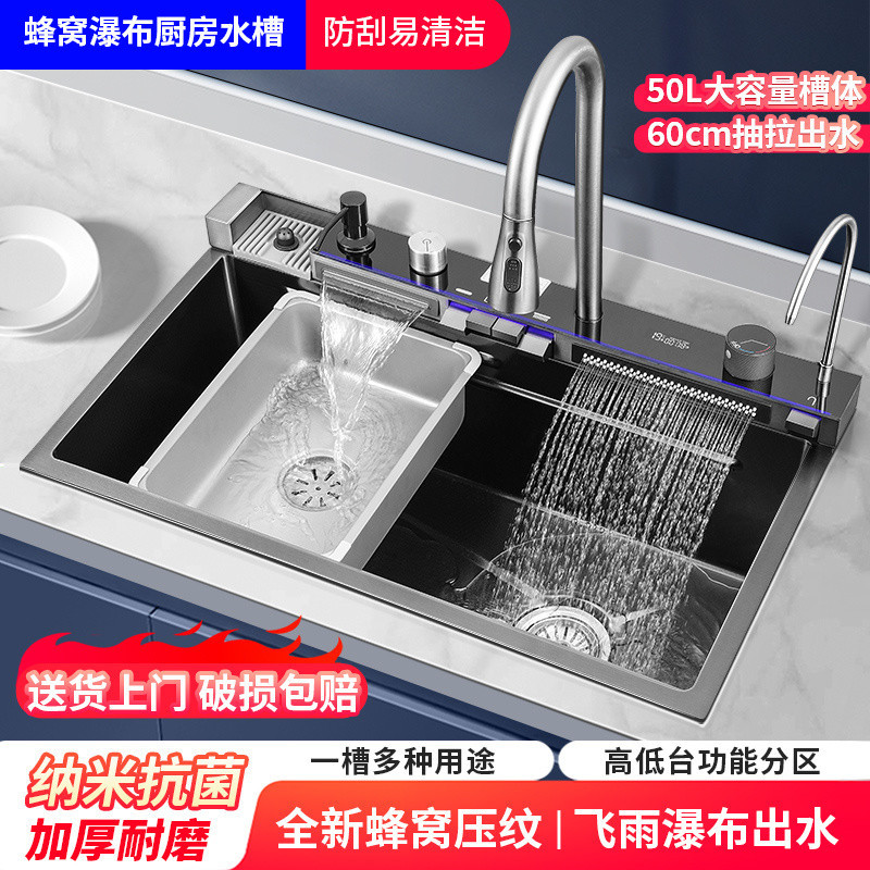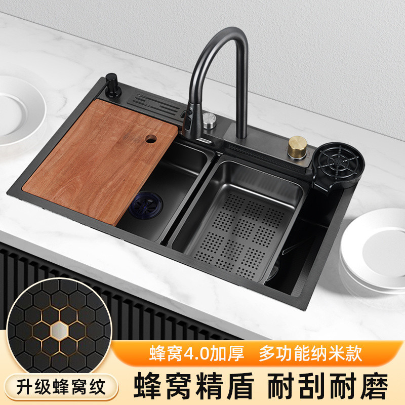 9saクジラの滝特厚飛雨水槽デジタル表示ナノ食器洗い池304ステンレス製ハニカム野菜スマート水