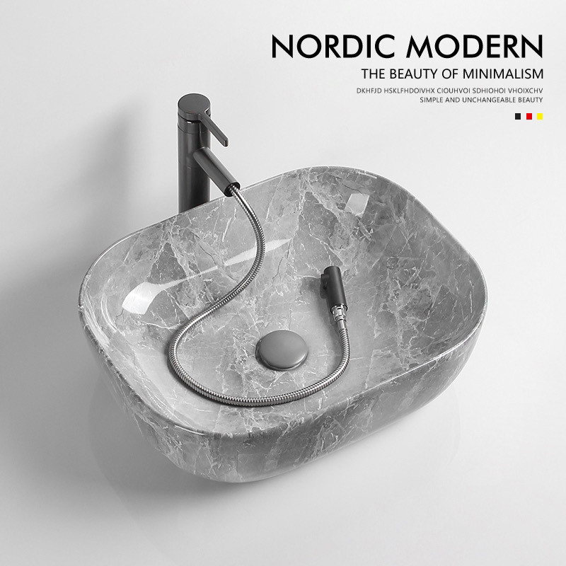 9sa北欧灰色黒色石紋台上盆洗面器家庭用トイレ陶磁器洗面所バルコニー洗面所洗面所