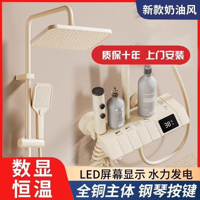 9saクリーム風白色恒温全銅シャワーシャワーセットシャワー浴室家庭用ピアノシャワーヘッド
