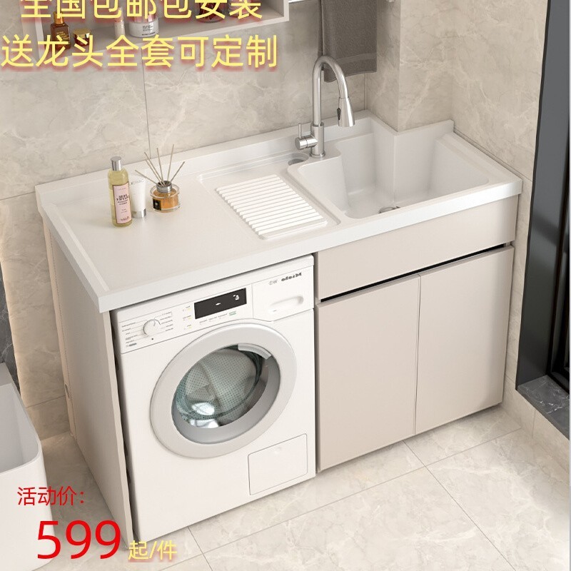 9saベランダ洗濯機キャビネットセット一体式盆と洗濯板付き宇宙ハニカムアルミ洗濯機キャビネット洗濯台洗濯池
