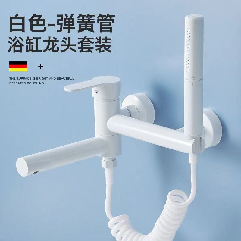 9saの白い浴室の浴槽の蛇口の冷熱は壁に入ります。