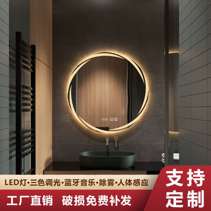 9sa 北欧ライト高級スマートバスルームミラードレッシングテーブルメイクアップミニマリスト壁掛けラウンドタッチスクリーンバスルームライト付き