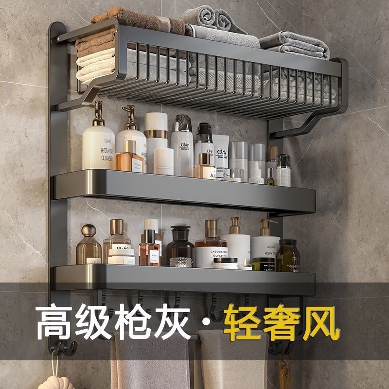9sa二階タオルラックトイレ棚穴開けない銃グレー宇宙アルミ浴室壁掛け式バスタオルラック