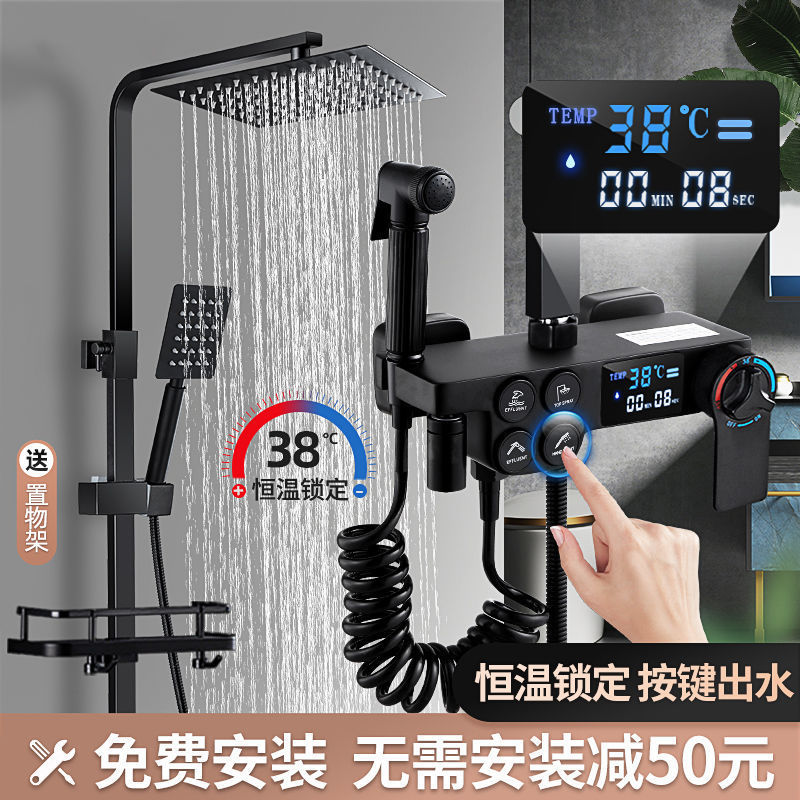 9sa黒色恒温デジタル表示シャワーセット全銅家庭用浴室壁式シャワーヘッド