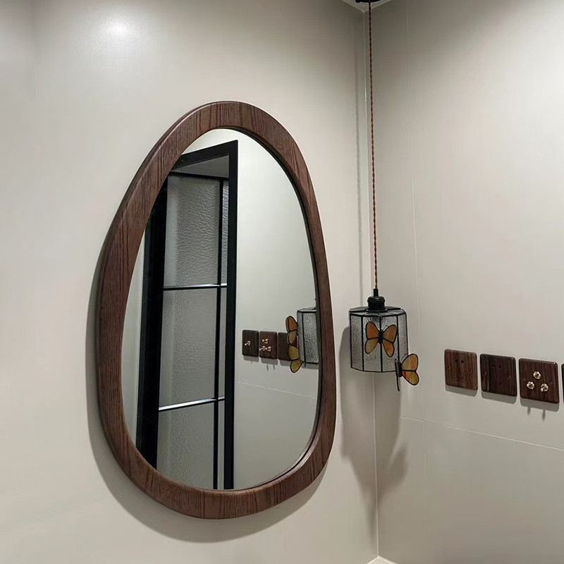 9saアメリカ式レトロ実木化粧鏡浴室鏡異形不規則鏡北欧トイレ化粧鏡壁