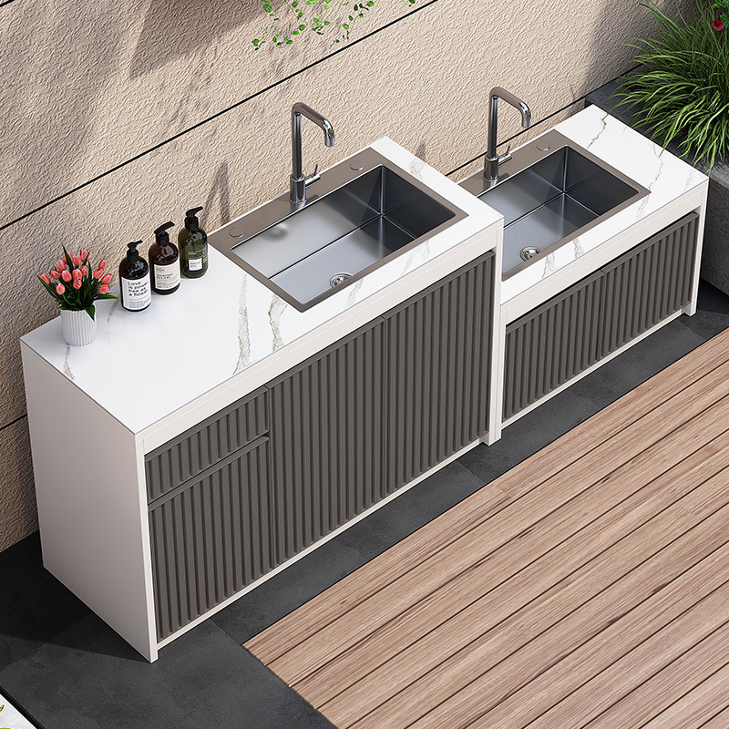 9sa 屋外ロックプレートコンソール一体型中庭洗面台屋外家庭用食器洗いシンクアルミ合金キャビネット