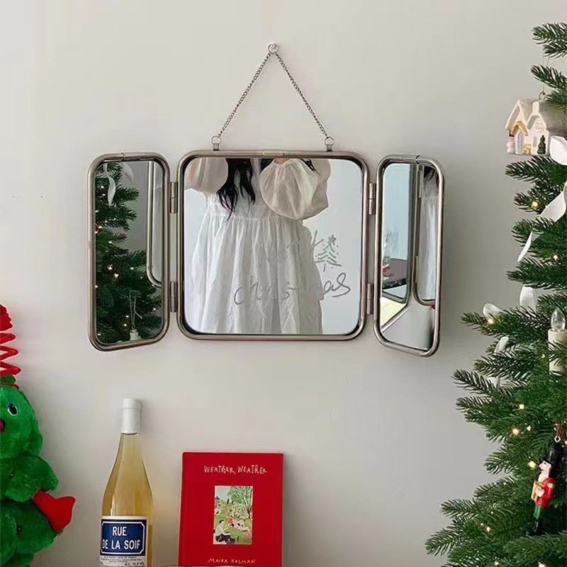 9sa北欧ステンレス三つ折り鏡折りたたみ式壁掛け式浴室鏡化粧鏡民宿装飾鏡不規則鏡