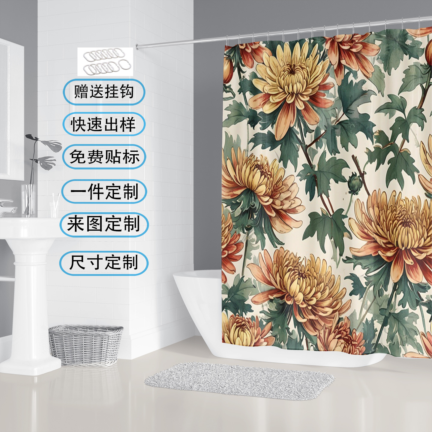 メーカー二層大環デジタルプリント防水シャワーカーテン