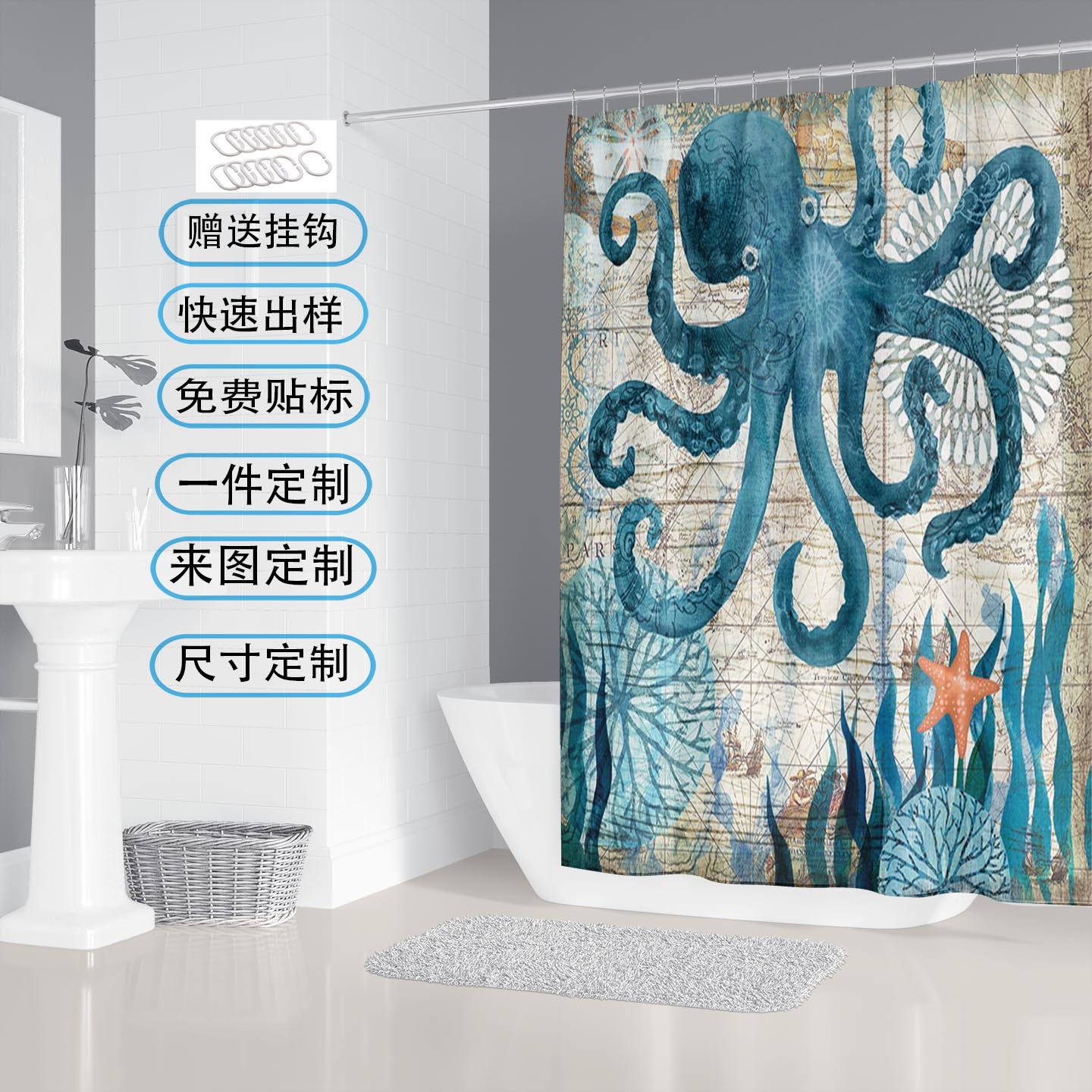 国境を越えた人気の海洋動物タコシリーズデジタルプリントポリエステル防水防カビシャワーカーテン4点セットメーカー