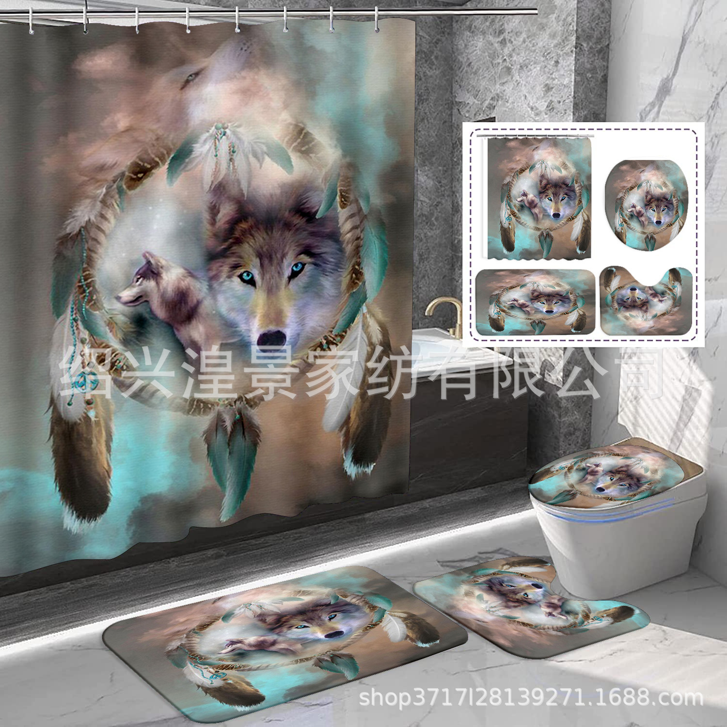クロスボーダー爆型動物植物シリーズデジタルプリントシャワーカーテン4点セット防水防かび浴室カーテン