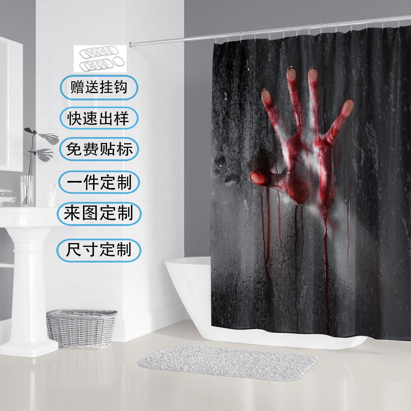 国境を越えた人気のハロウィンシャドウシリーズデジタルプリントポリエステル防水防カビシャワーカーテン4点セットメーカー