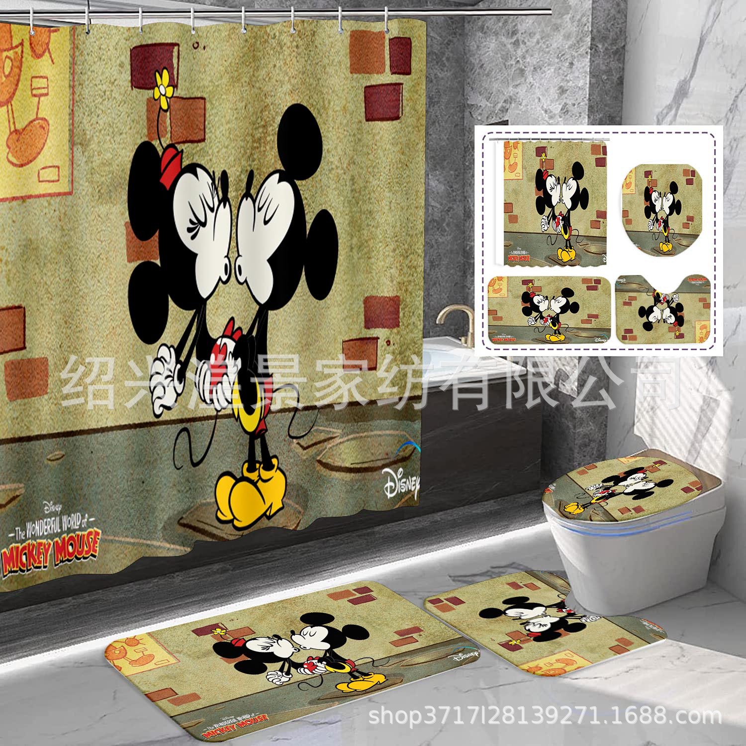 国境を越えたミッキー唐老鴨系デジタルプリントシャワーカーテン4点セット防水防かび浴室カーテンが作れる