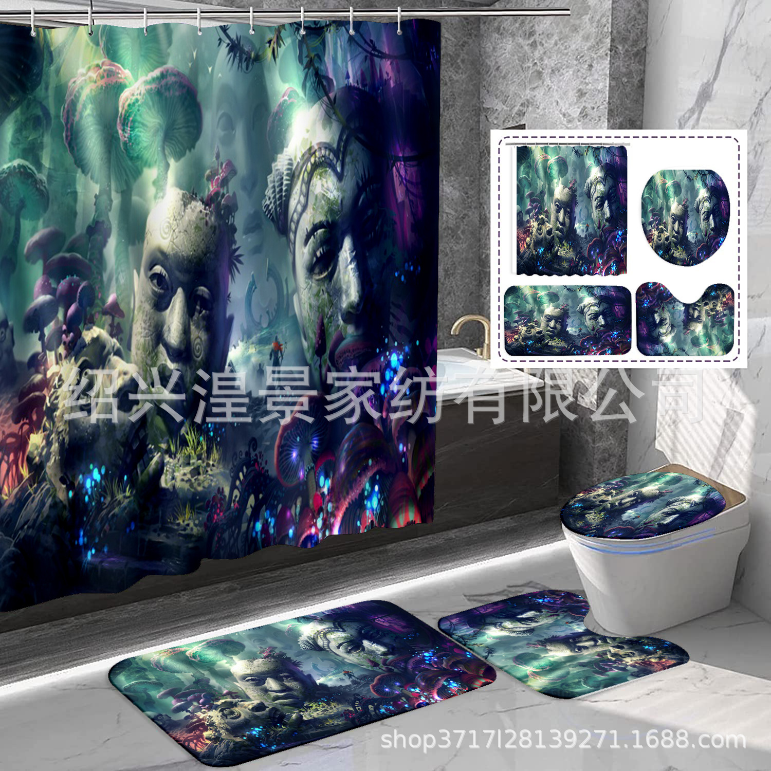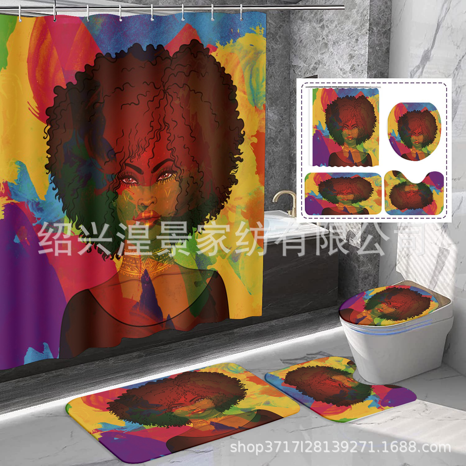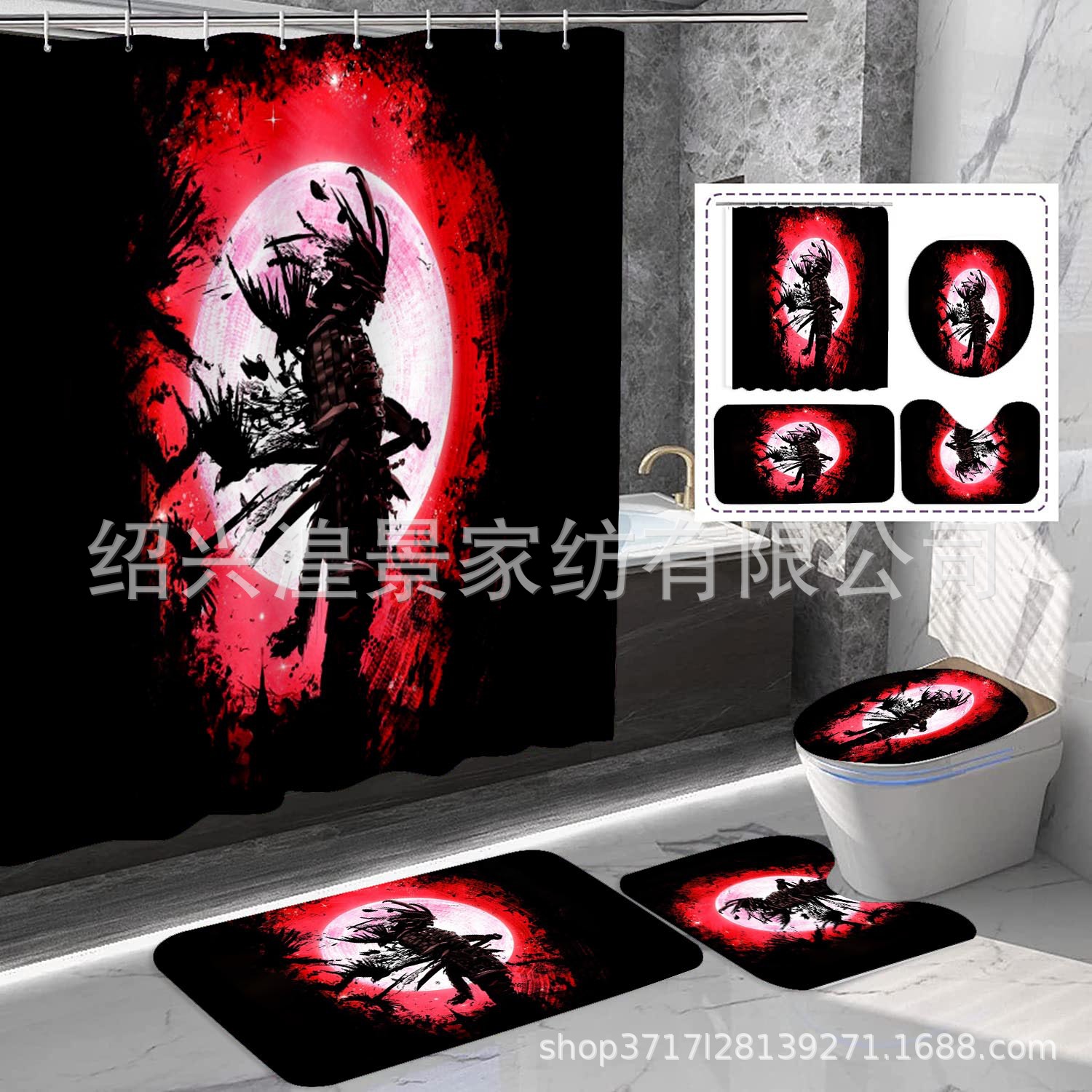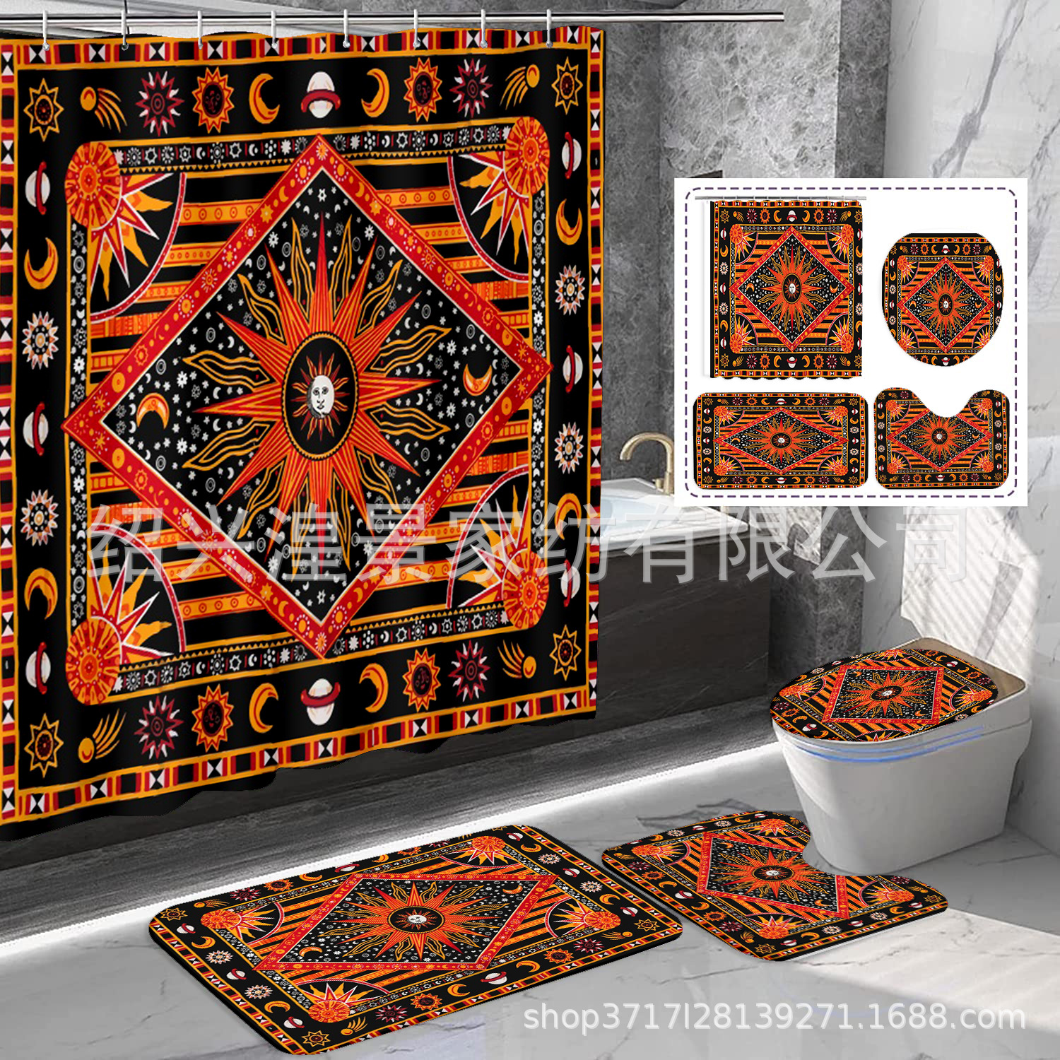 クロスボーダー爆金祭りシリーズデジタルプリントシャワーカーテン4点セット防水防かび浴室カーテン来図はすべてできます。