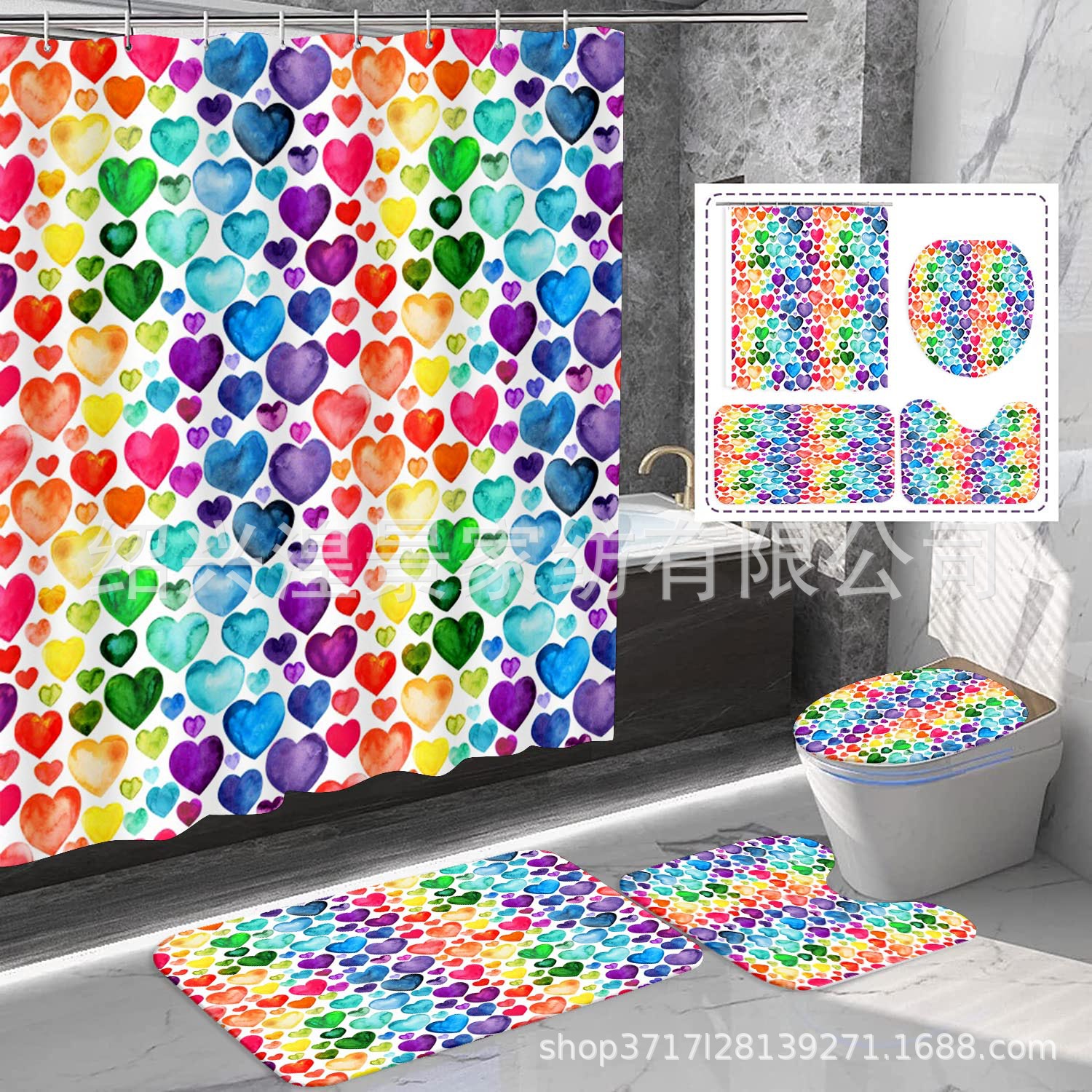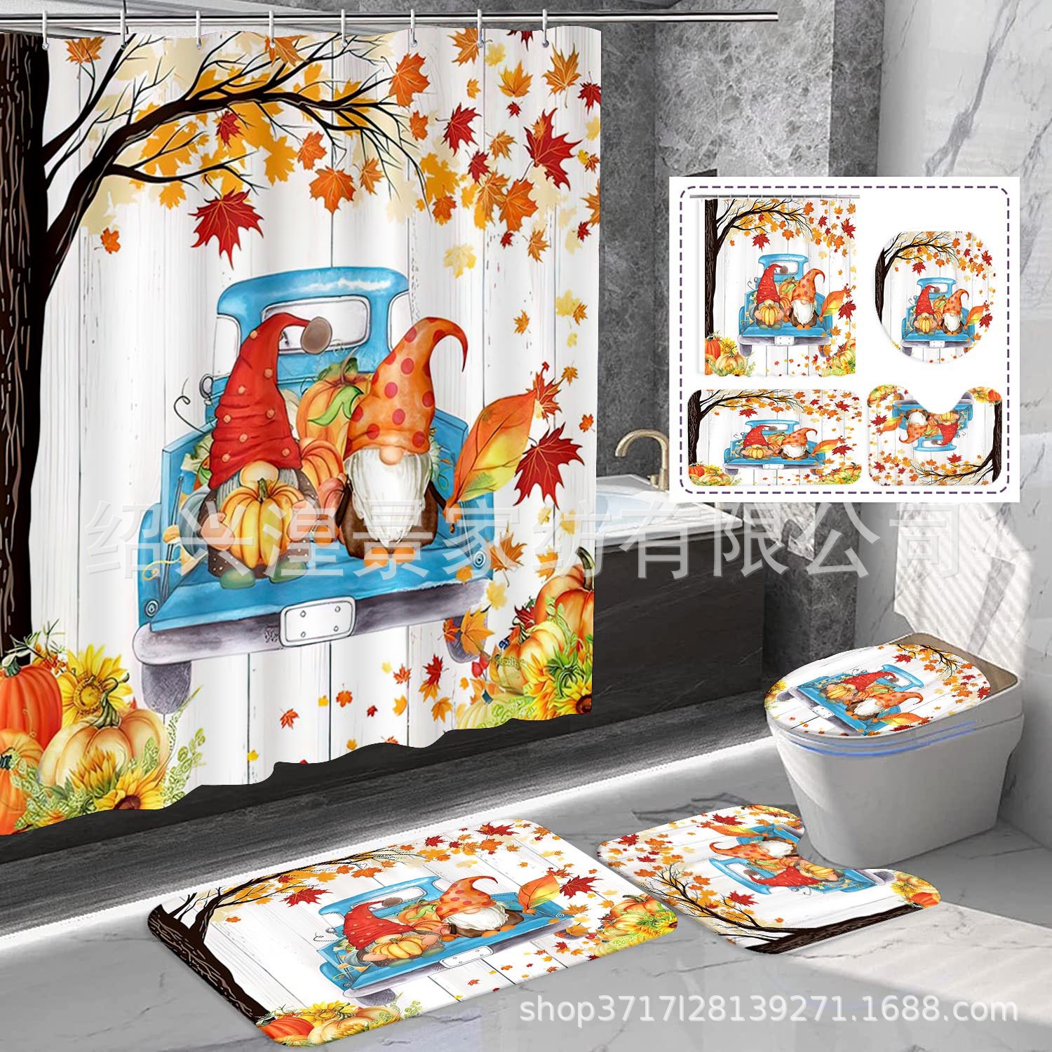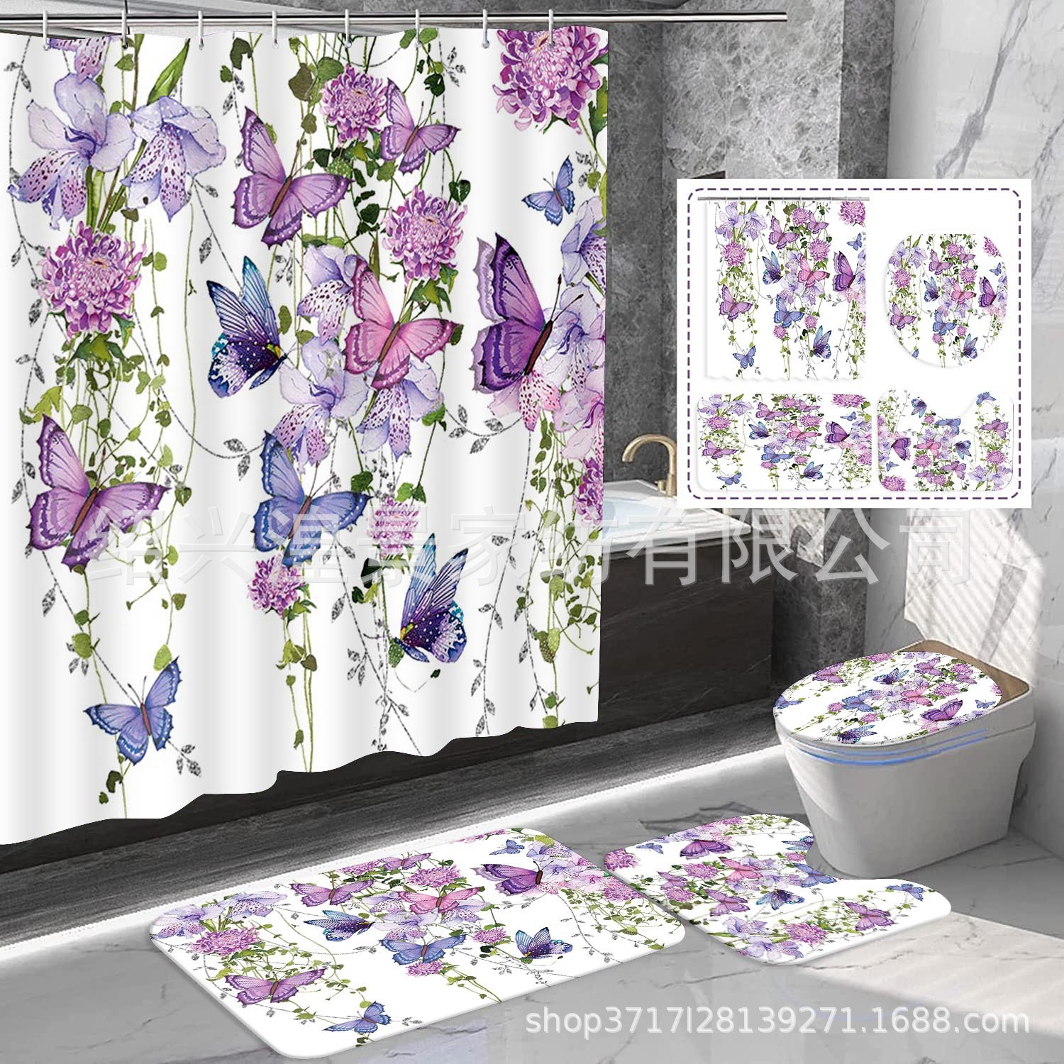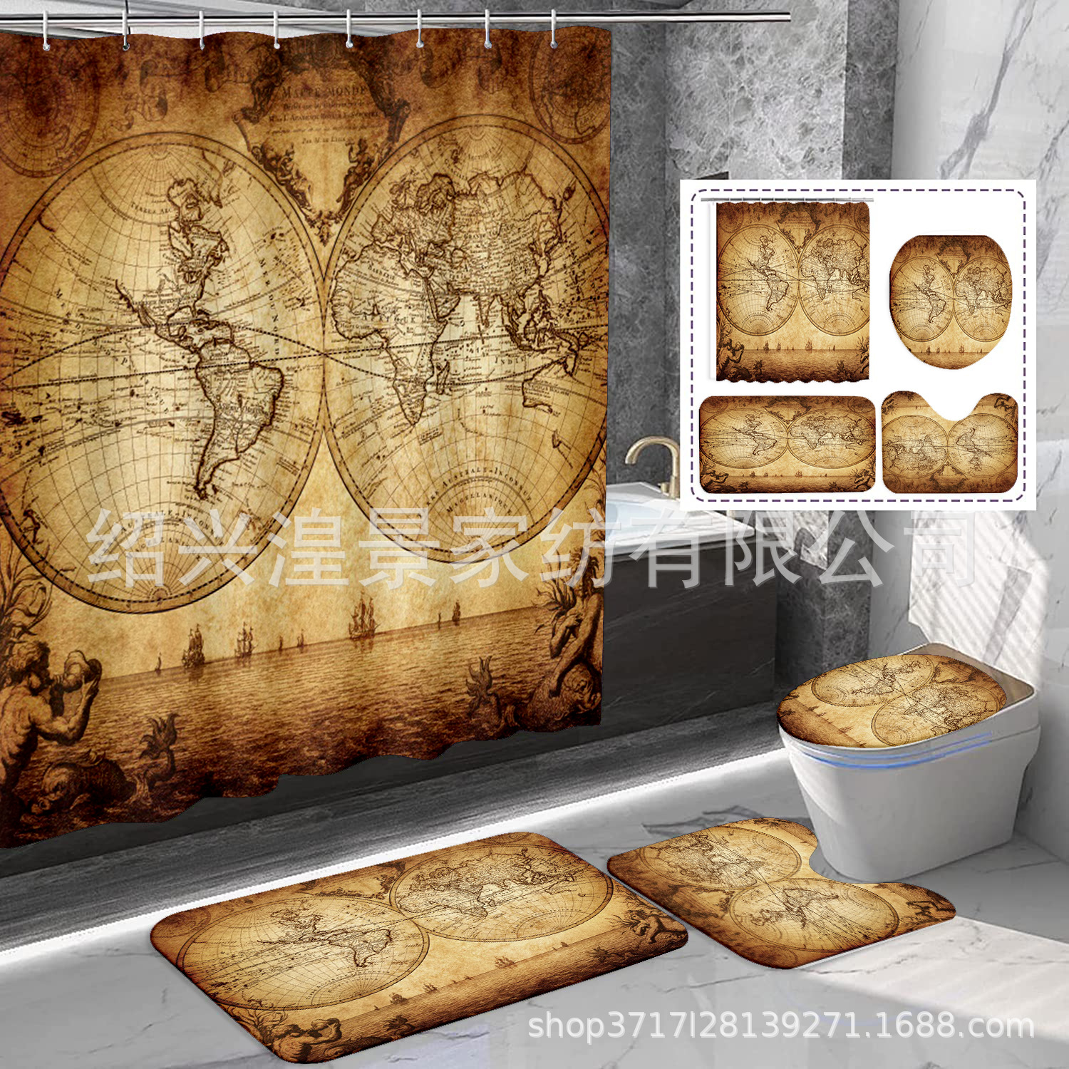 クロスボーダー爆金祭りシリーズデジタルプリントシャワーカーテン4点セット防水防かび浴室カーテン来図はすべてできます。