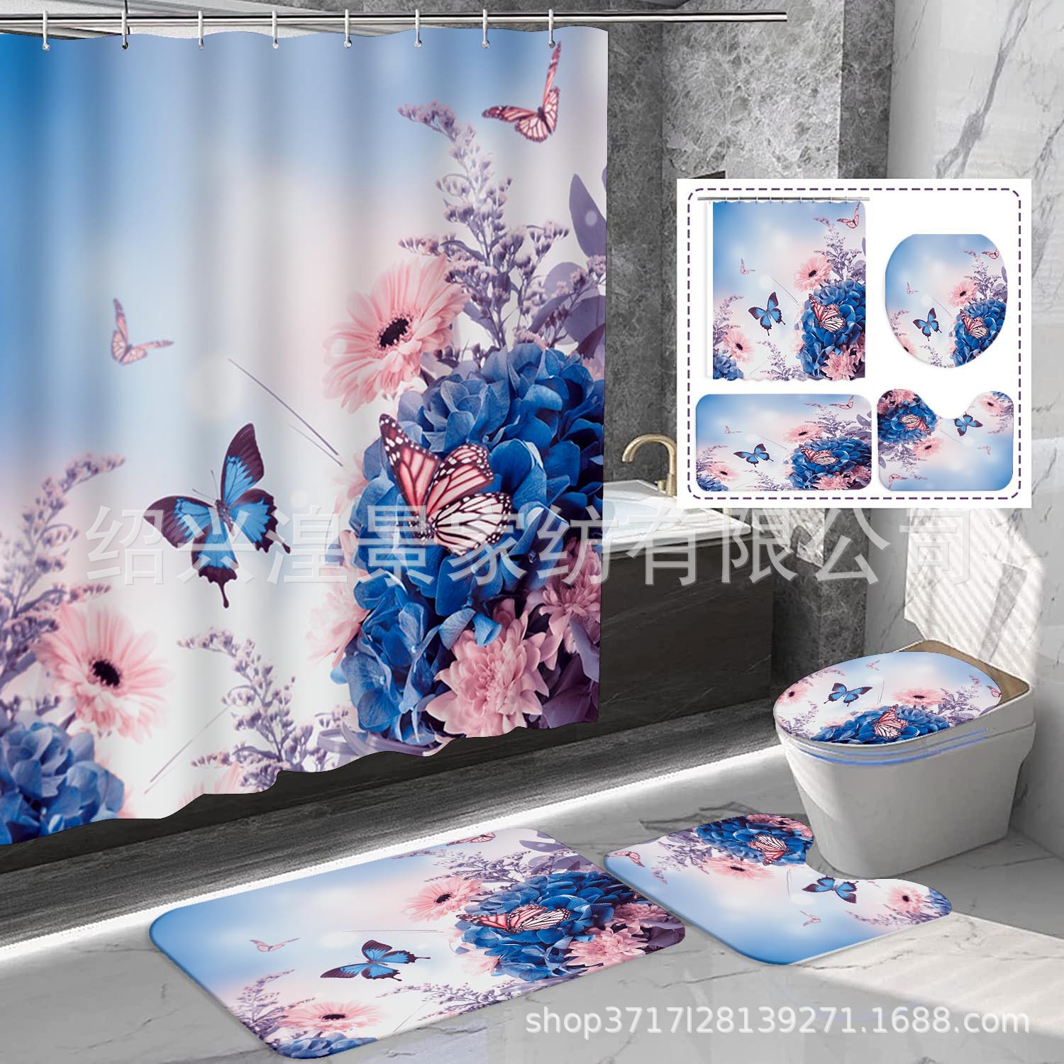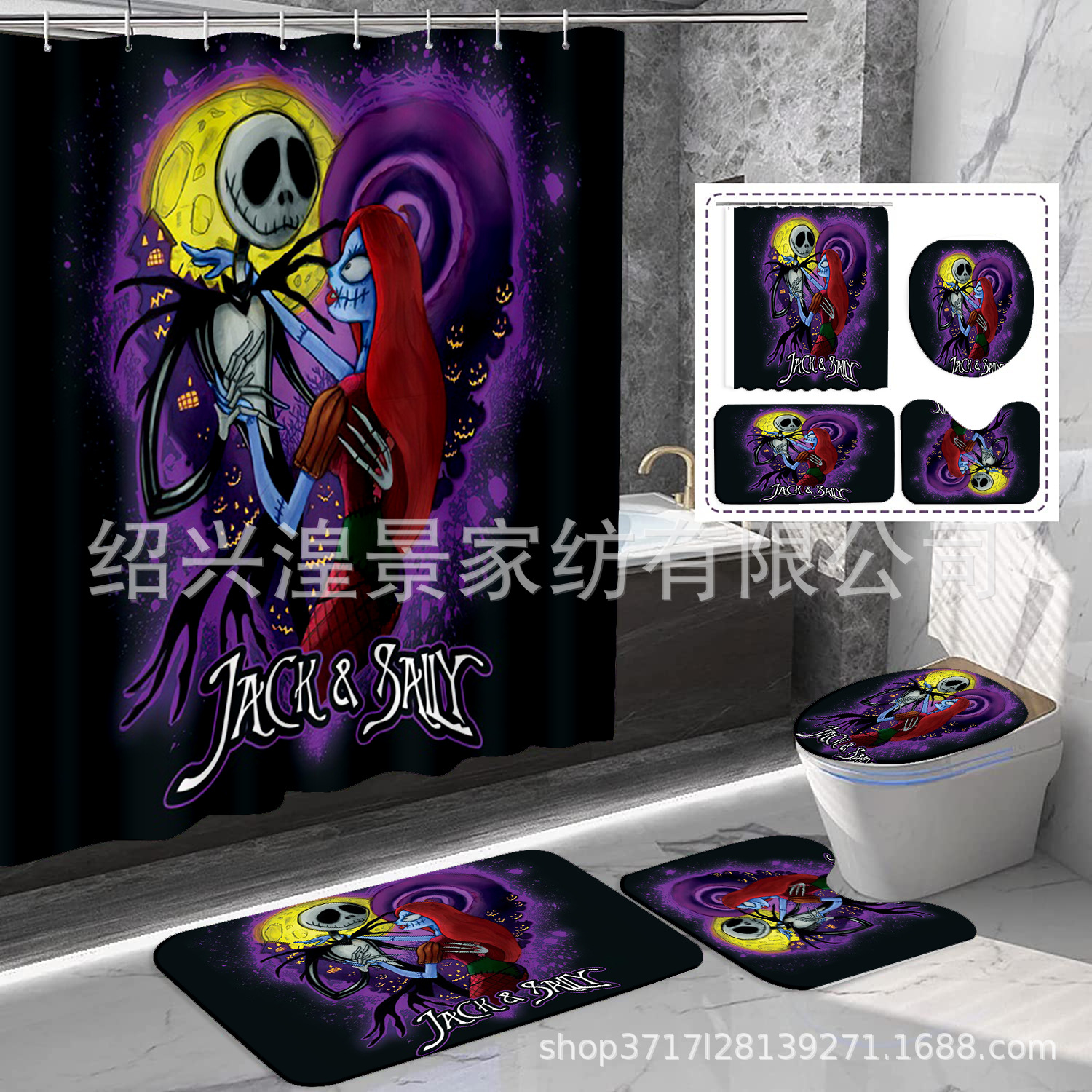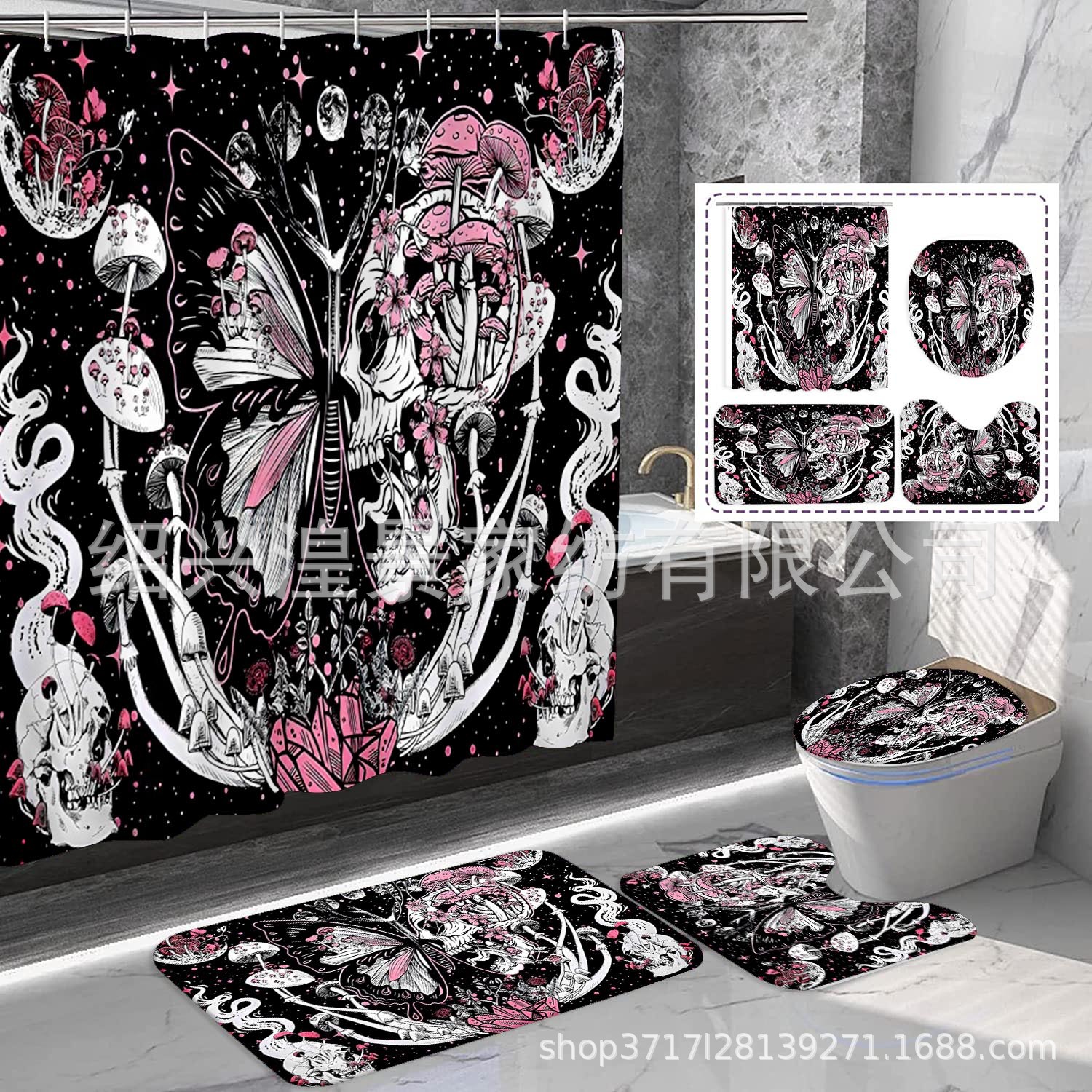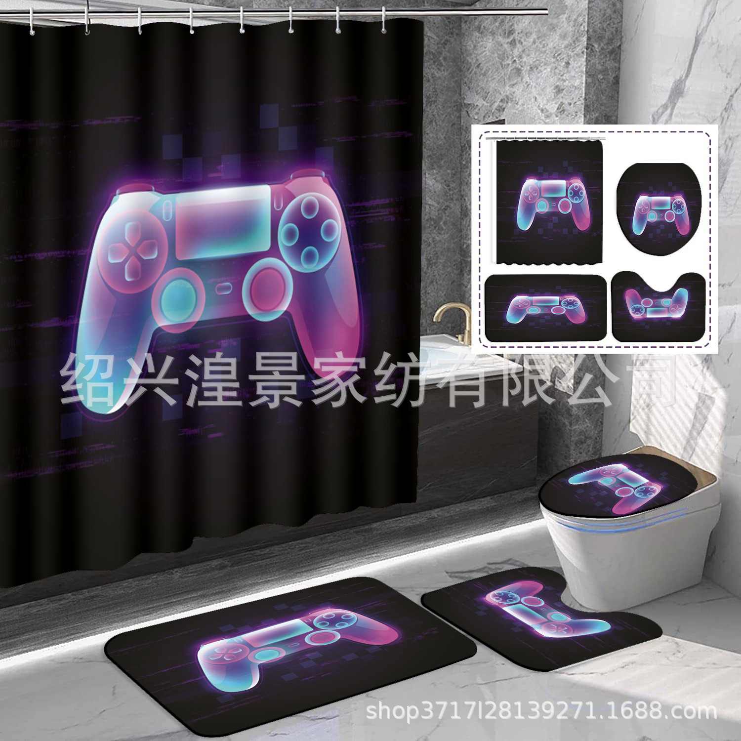 クロスボーダー爆金祭りシリーズデジタルプリントシャワーカーテン4点セット防水防かび浴室カーテン来図はすべてできます。