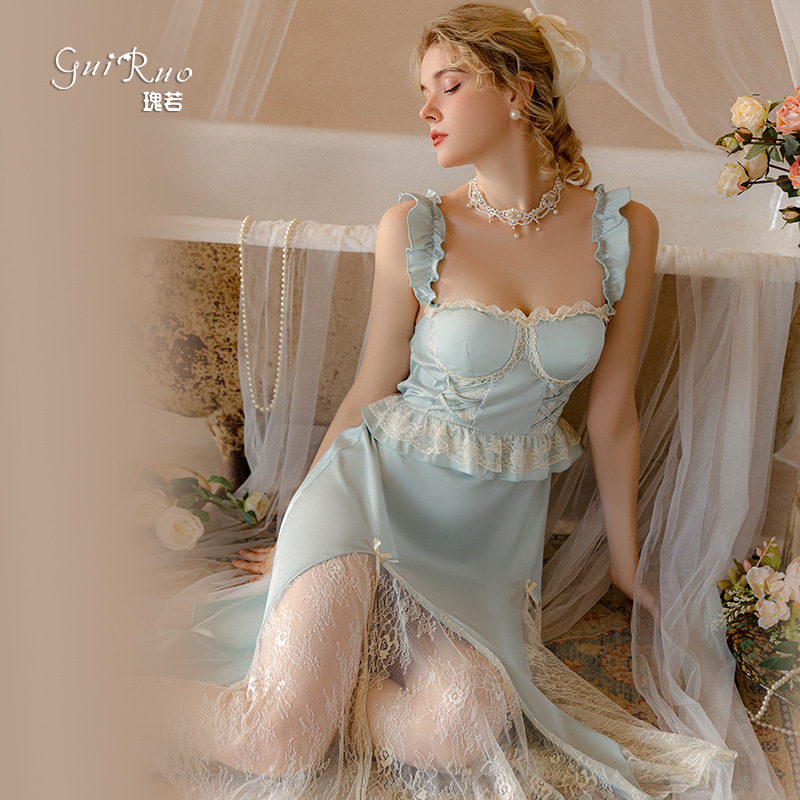 薔薇若純欲風網糸セクシーパジャマ快適通気シンプルなストラップ寝スカート外衣ホーム服セット2133