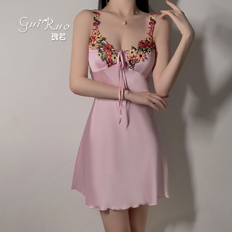 Guiruo ブランド下着スイートパール装飾純粋な欲望スチールリングと胸パッドサスペンダーナイトガウンホームウェアセット 4141