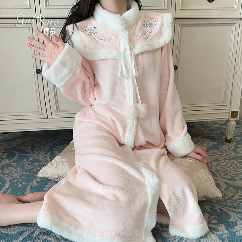 バラのようなフランスの甘いベルベットのパジャマは贅沢で、胸パッドの女性ストラップの寝スカートのコートのセット4996