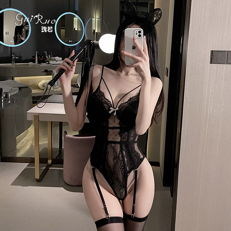 セクシーなランジェリー、透け感のあるメッシュ素材、誘惑的なスチールリング入り胸パッド、オープンタイプ、大きいサイズのナイトウェア、制服風セット1738