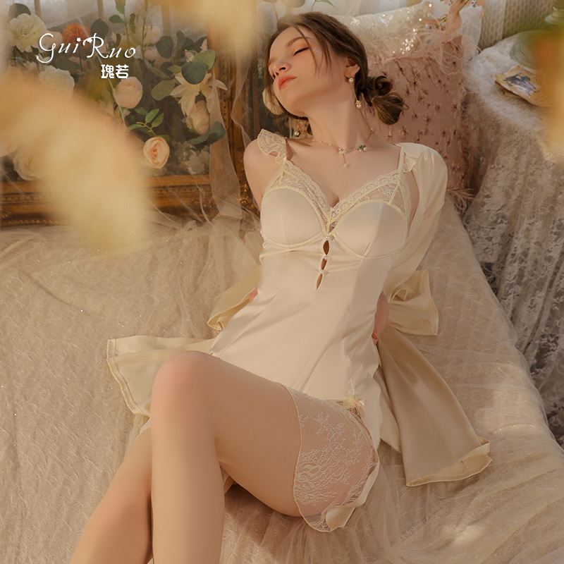 薔薇若春夏セクシー透視誘惑鋼輪胸パッドがストラップを集めて寝ているスカートの上着の女性の家服セット3207