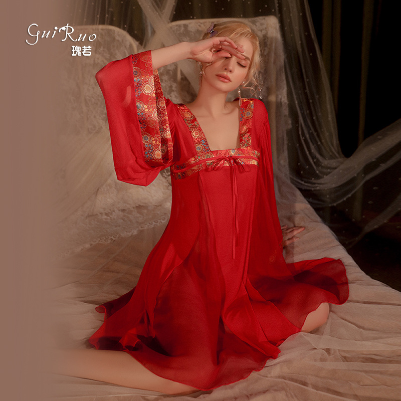 バラ若趣味下着古代セクシー透視漢服国風刺繍長袖パジャマ純欲制服セット2931