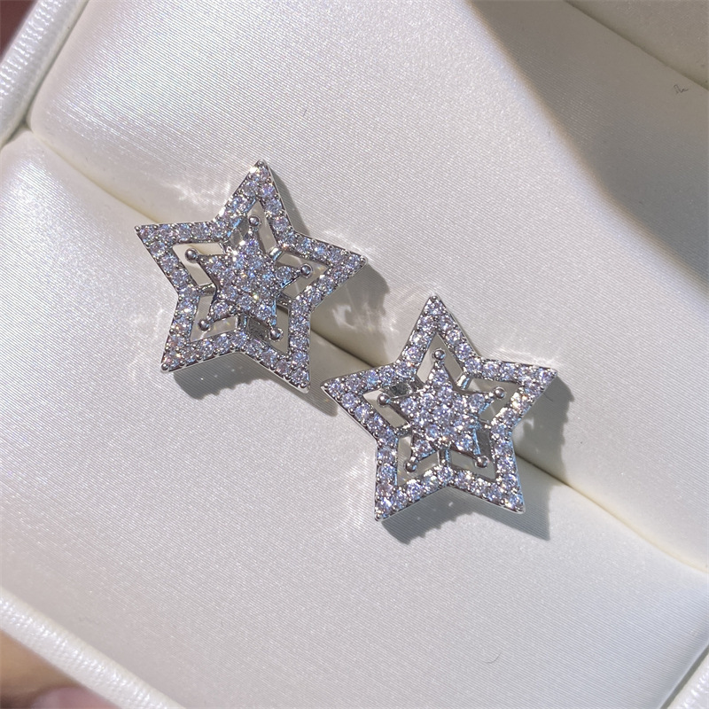 ファッション百合韓国版少女星ピアス銅メッキ925銀入れジルコンアレルギー防止甘美気質耳飾り
