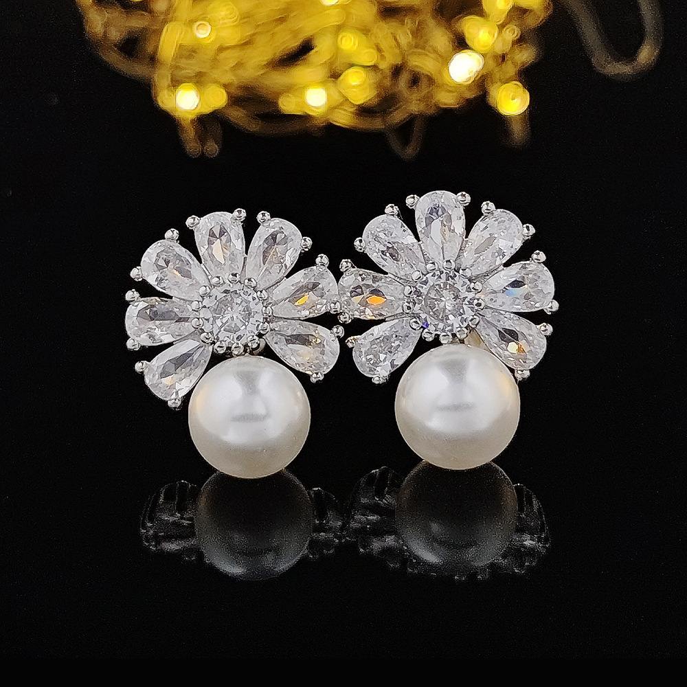 韓国版のシンプルな小香風の耳飾りの花の真珠の耳飾りの高級なかわいい気質の銅はジルコンのイヤリングの女性を入れます。