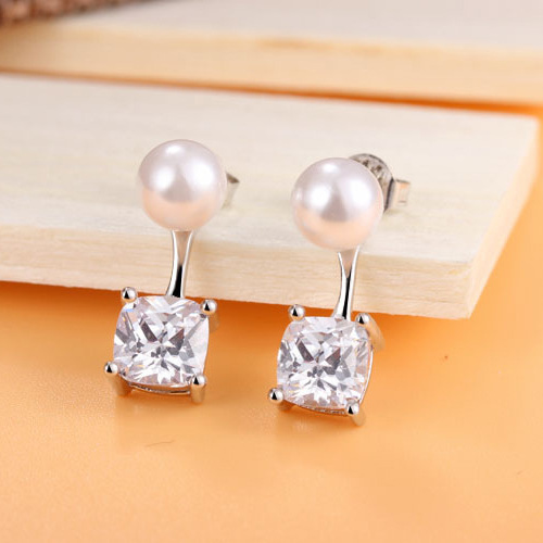 両用真珠ピアス銅にジルコンを入れるイヤリングはシンプルでおしゃれで洗練された後、真珠の方ドリルジルコン耳飾り