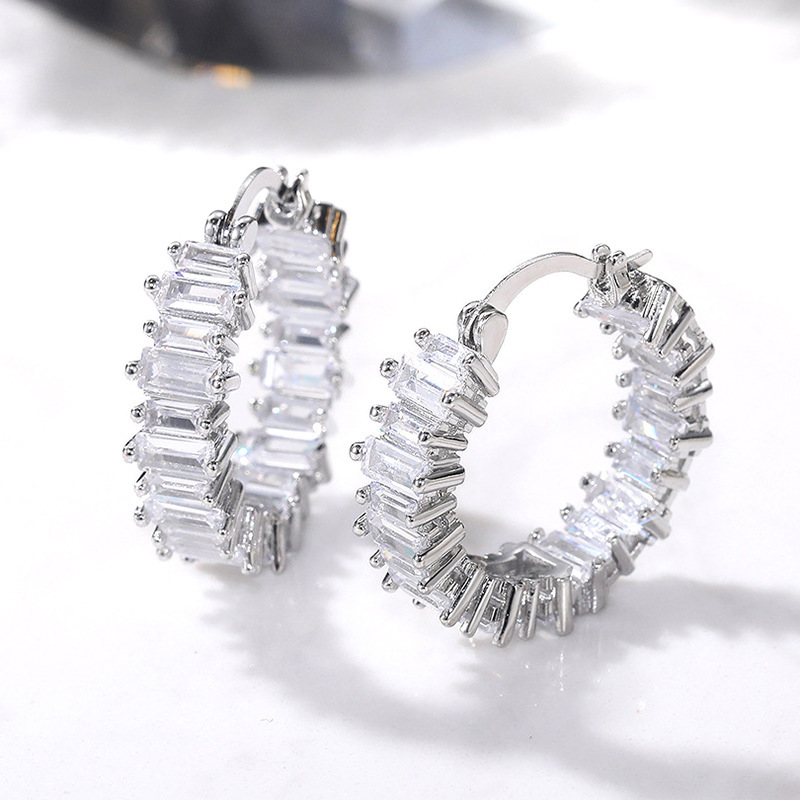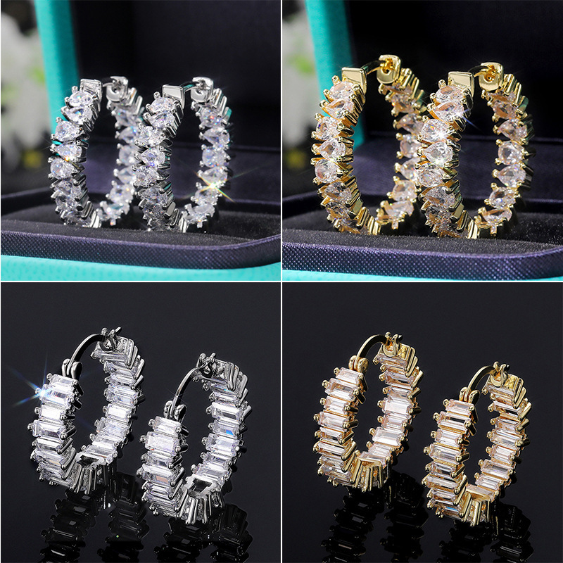国境を越えた欧米のドリルの輪のイヤリングの小さい大衆の方のドリルの高級感の環境保護の銅はジルコンを入れて軽くて豪華な耳を掛けて卸売りします。